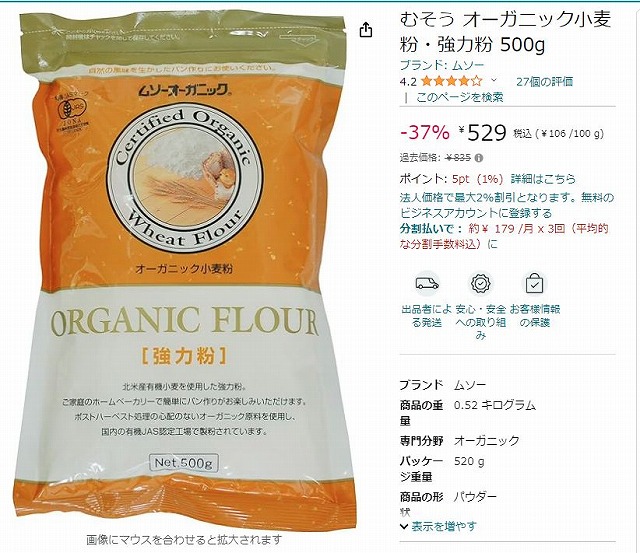 有機強力粉 180g ムソーオーガニック カナダ又はアメリカ産