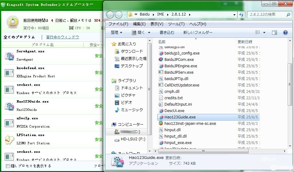 Baidu IMEの中に組み込まれているプログラムで、自動的に立ち上がったと思います。