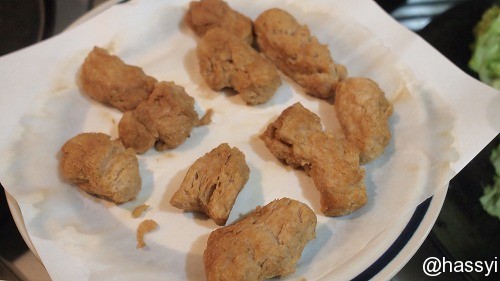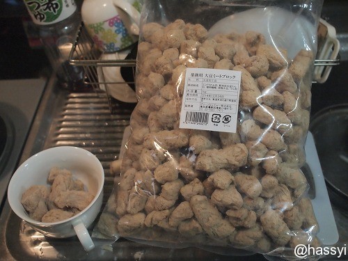 大豆ミートブロックで唐揚げとして調理済みのものもあります、そちらの方が安いのですが