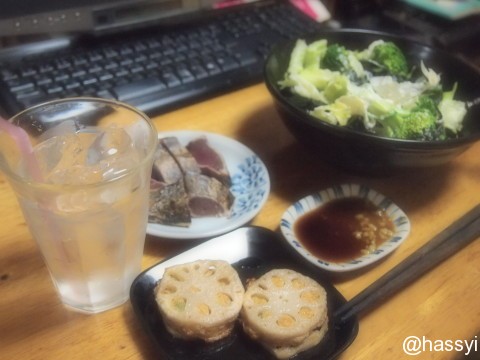 レンコンのはさみ揚げは、レンジで温めただけ^^;
