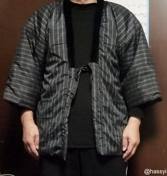 この半纏はかなり薄手で真冬は中に着こまないと無理ですけど、今の季節は軽くて楽です