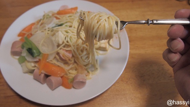 うどん麺とちがって、汁を吸うので汁を切りながら食べないとすぐに汁がなくなります。