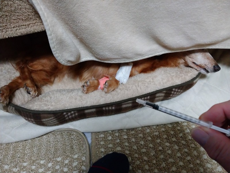 対処療法で、愛犬の苦しさを抑えるための鎮静剤投与です