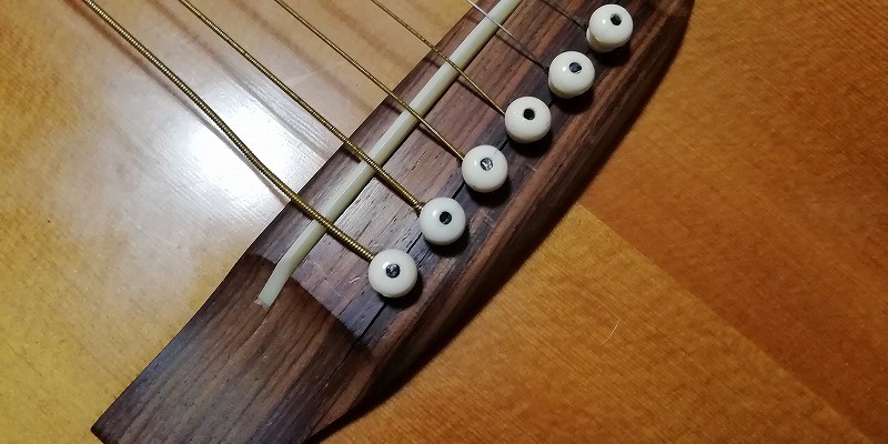 しかもブリッジがピンの部分が全部割れていて、しかも表板から10年玉2枚入りそうに浮いているし\(◎o◎)/!