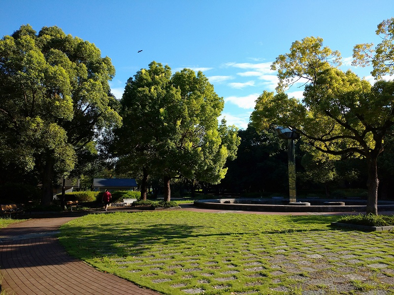 公園の道路を挟んで先が米軍基地跡地で当時から立ち入り禁止となっていて