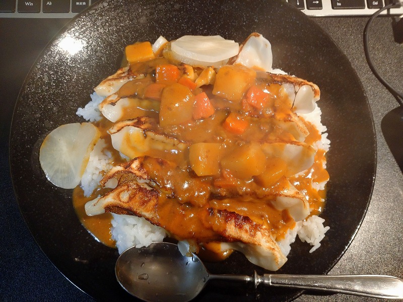4日の晩 餃子12個入りカレー