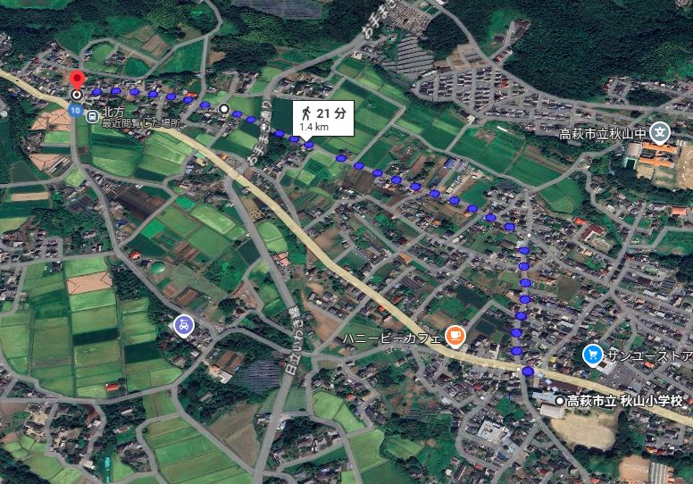 はい、この後ろ左に曲がった先に秋山小学校がある