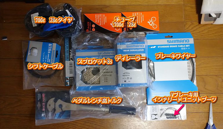 ブレーキワイヤー新品交換とインナリードユニット/90°・135°ブーツ/45mm