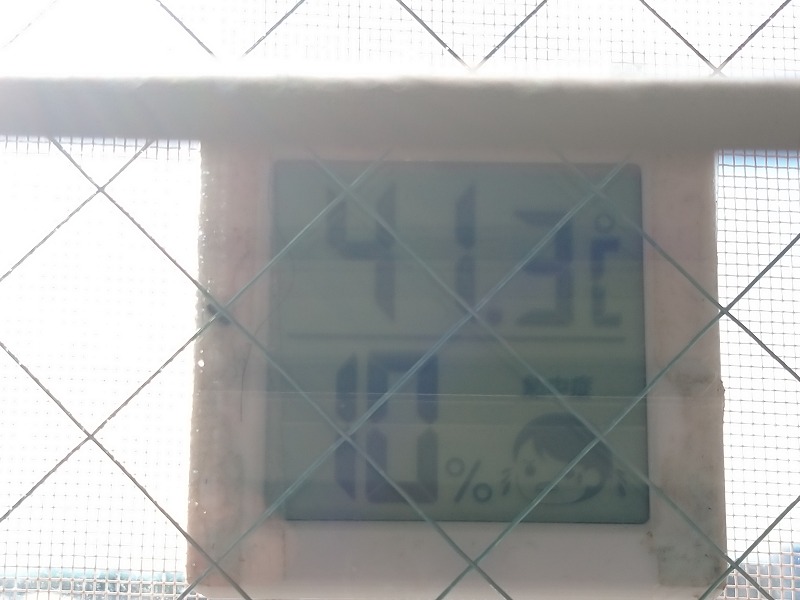 さて、ベランダの気温は41.3℃ 16時34分