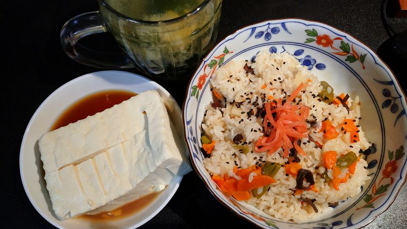 パールライス 最後の1合で、炊き込みご飯 麺類を茹でて食べようと思ったが