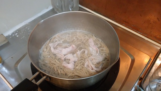 汁物に肉を入れるのを忘れたので蕎麦の方へ入れたところ