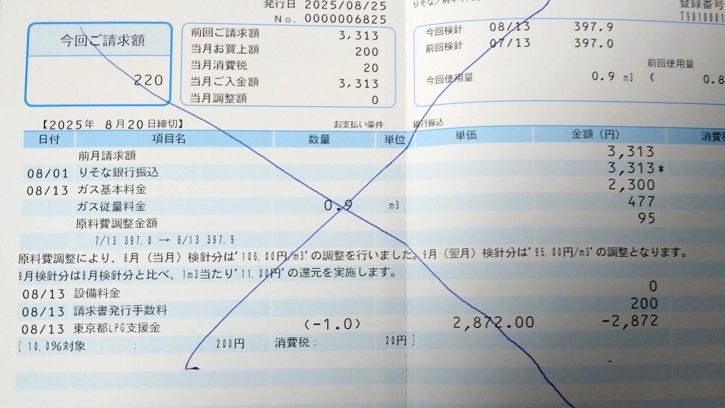 東京都LPG支援金がー2872円 3000円の支援金がでているので