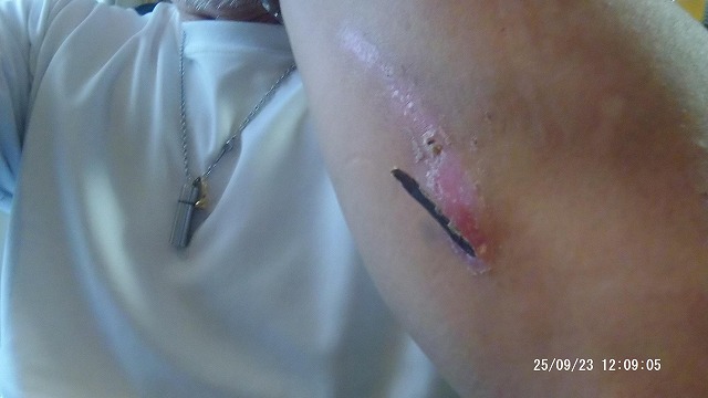 転倒しての擦り傷を作って すぐ撮影