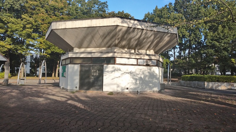 この建物は、この一帯は夏場子供用の水遊び場となっているので