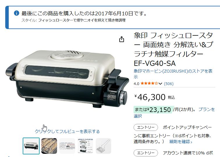 フィッシュロースター 象印