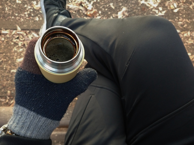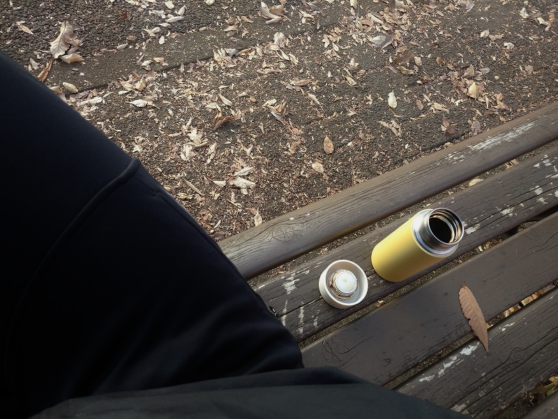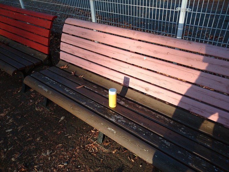 このベンチでいつもyahoo!ニュースを見るので、温かいコーヒー飲みたいなと