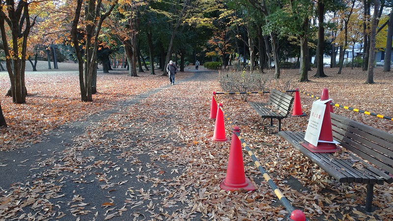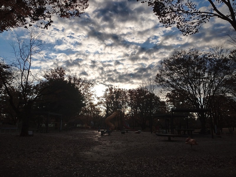 ちょうど奥のスピーカーから公園管理の自動アナウンスが鳴っている