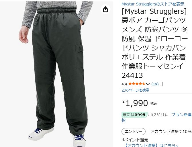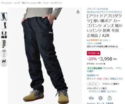 暖房なし 防寒対策でボアズボン 3度目の正直でLLサイズを