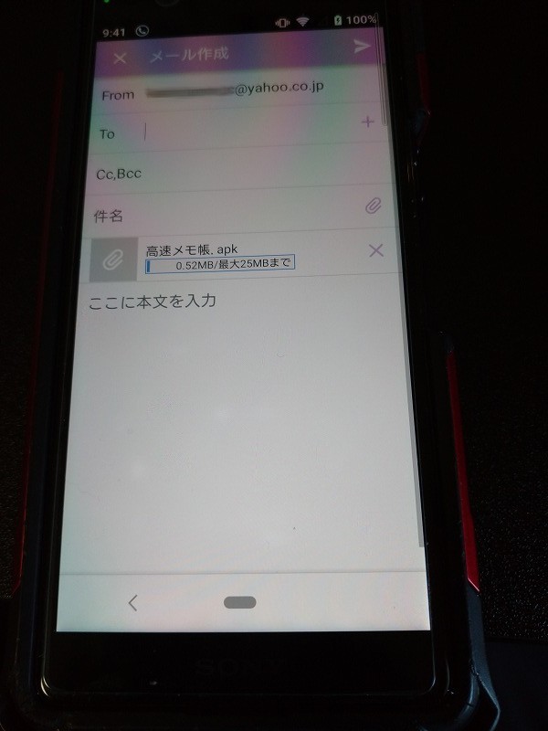 高速メモ帳のアプリをメール添付できました。