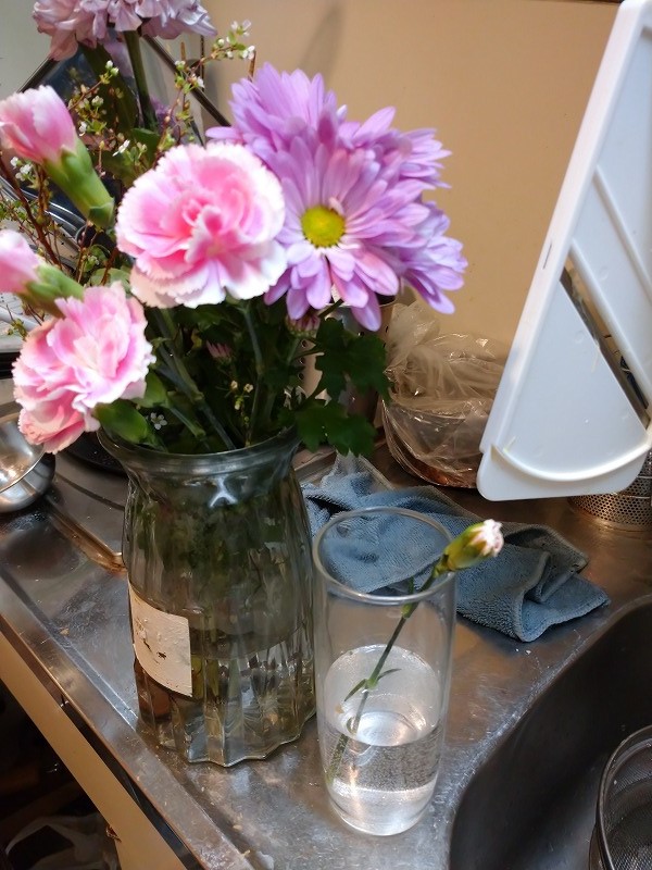 この時切り花を全体水に水道水で濡らします。