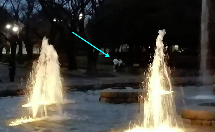 あれ? 噴水のムコウに?