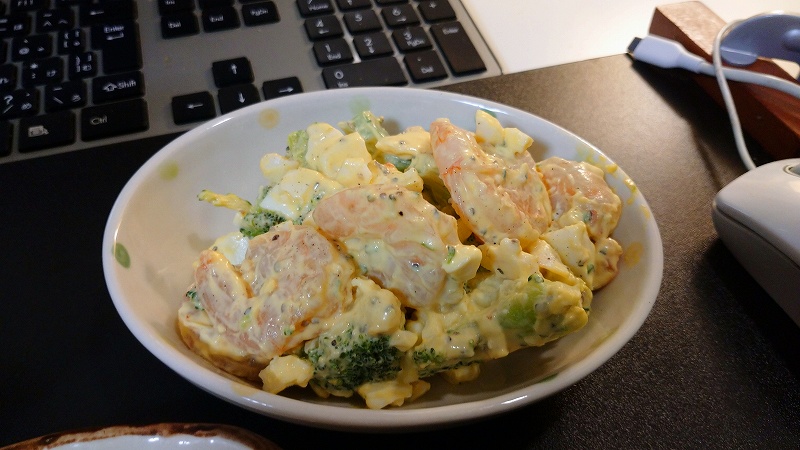 何買おうかなと、手羽元と 鳥軟骨を買って、海老とブロッコリーのサラダ?
