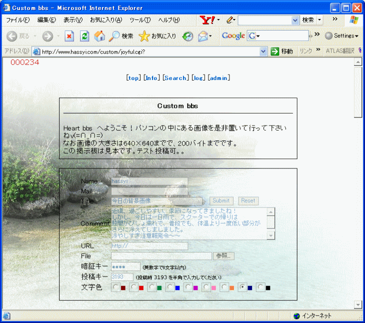 尚この掲示板は毎日背景画が変わるようにしていま。